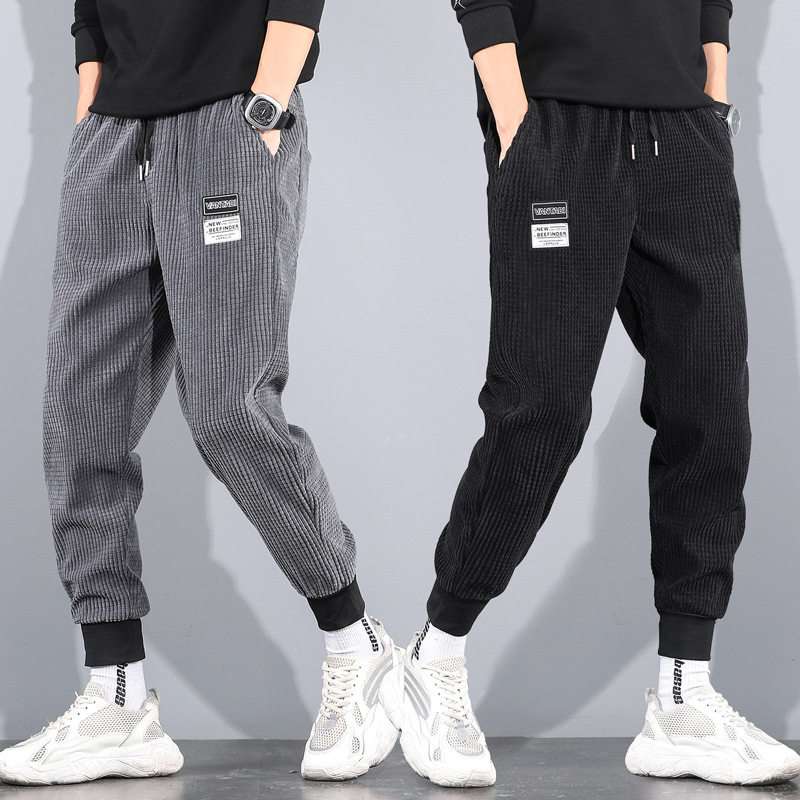 コーデュロイ男性ズボン春秋冬のファッションブランドとベルベットの厚いレジャースポーツ青少年工装束足ハーレムパンツ