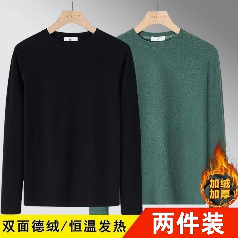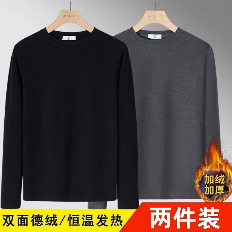 両面徳絨毛丸首長袖tシャツ男性式保温修身大きいサイズのボトムシャツ秋冬保温発熱下着