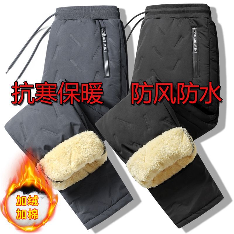 男性カジュアルパンツ冬ダウン綿ズボン防風外着保温厚い羊小毛ズボンプラスサイズのスポーツパンツ