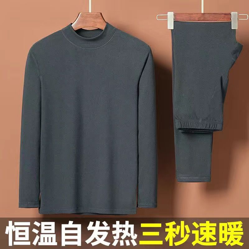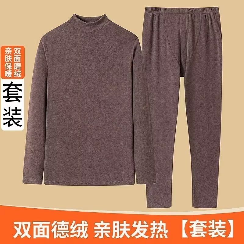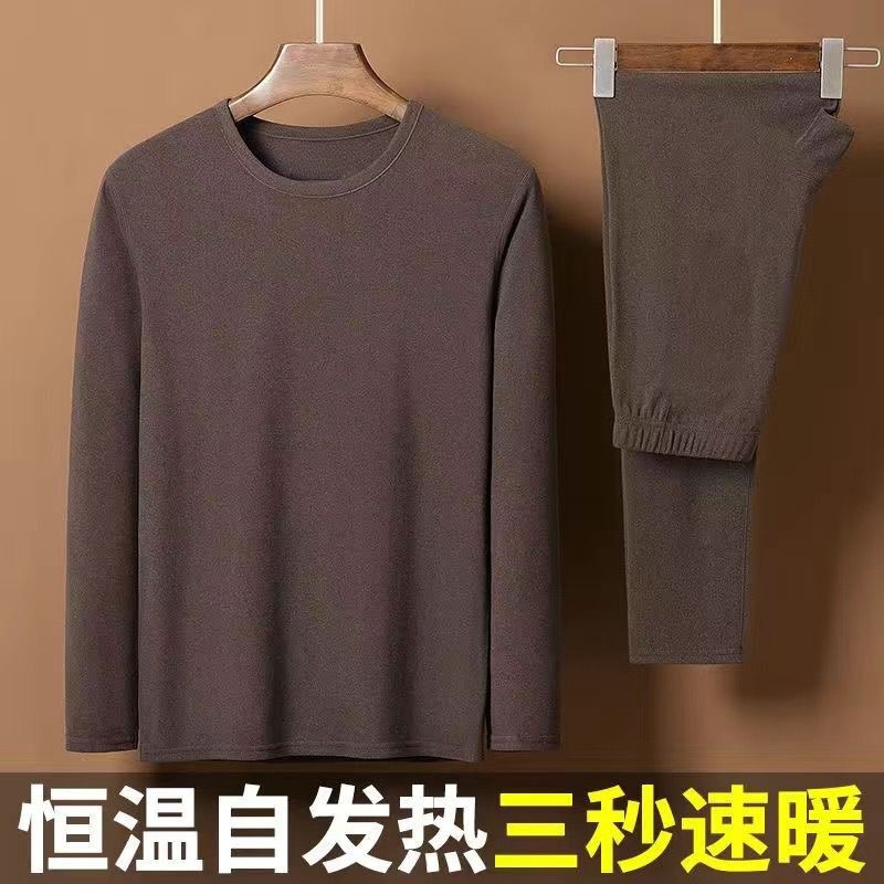 男性保温下着セット韓国版トレンド冬自己発熱両面徳絨毛長袖tシャツ底付きズボン