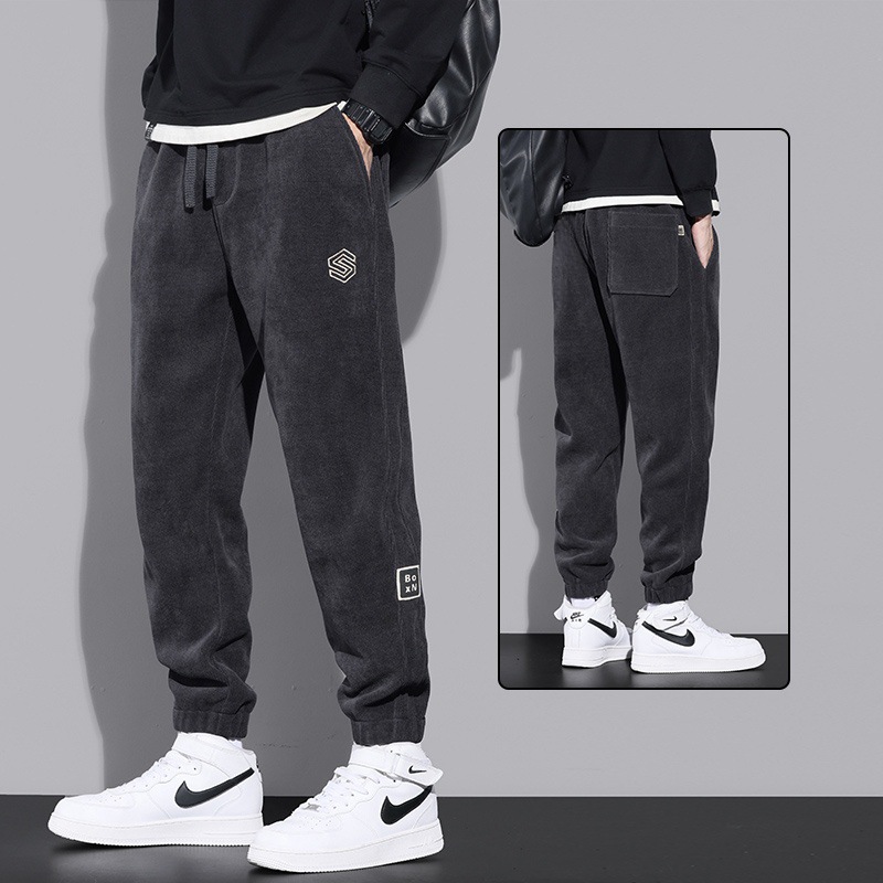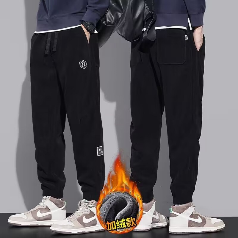 ベルベットの厚いカジュアルパンツ男性秋冬のゆるい束足博奥パイルズボン2024冬のスポーツパンツ