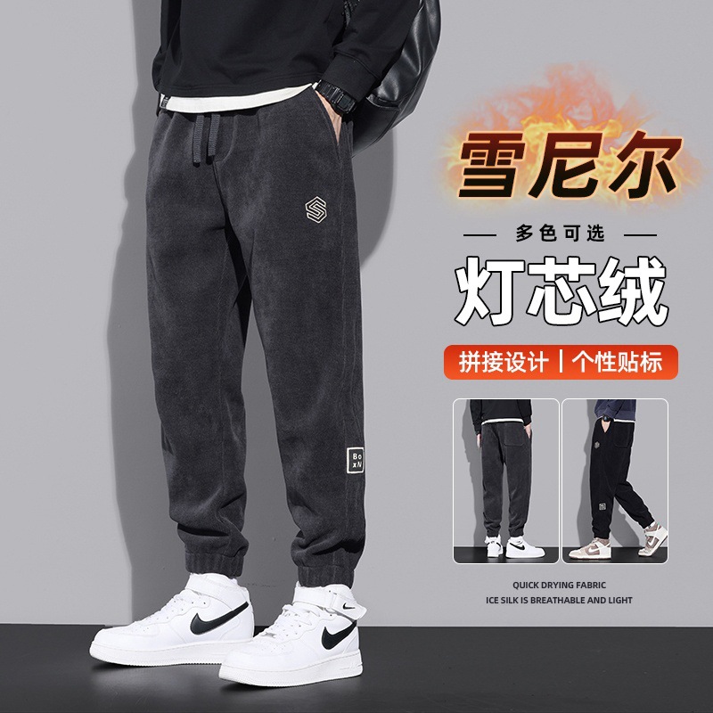 カジュアルパンツ男性秋冬2024新モデルのベルベットは、シェニールのコーデュロイ運動の足首のズボンを厚くした