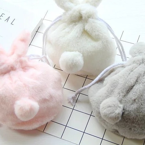 日本の毛のふわふわした熊のウサギの耳の蝶結びのひもの収納袋