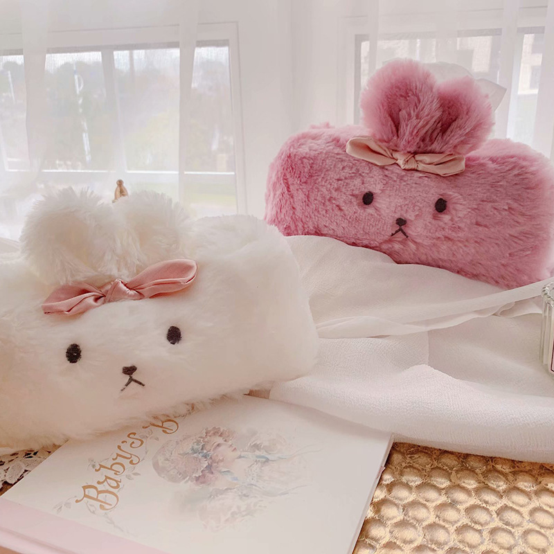 日本のアニメのベルベットの蝶結びの萌えウサギのリビングルームの車の飾りのティッシュカバーの少女の心のウサギのティッシュのティッシュの箱