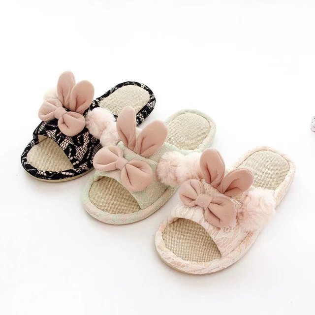 レースウサギの親魚口家庭用スリッパ防水滑り止め家庭用スリッパ亜麻スリッパウサギ耳