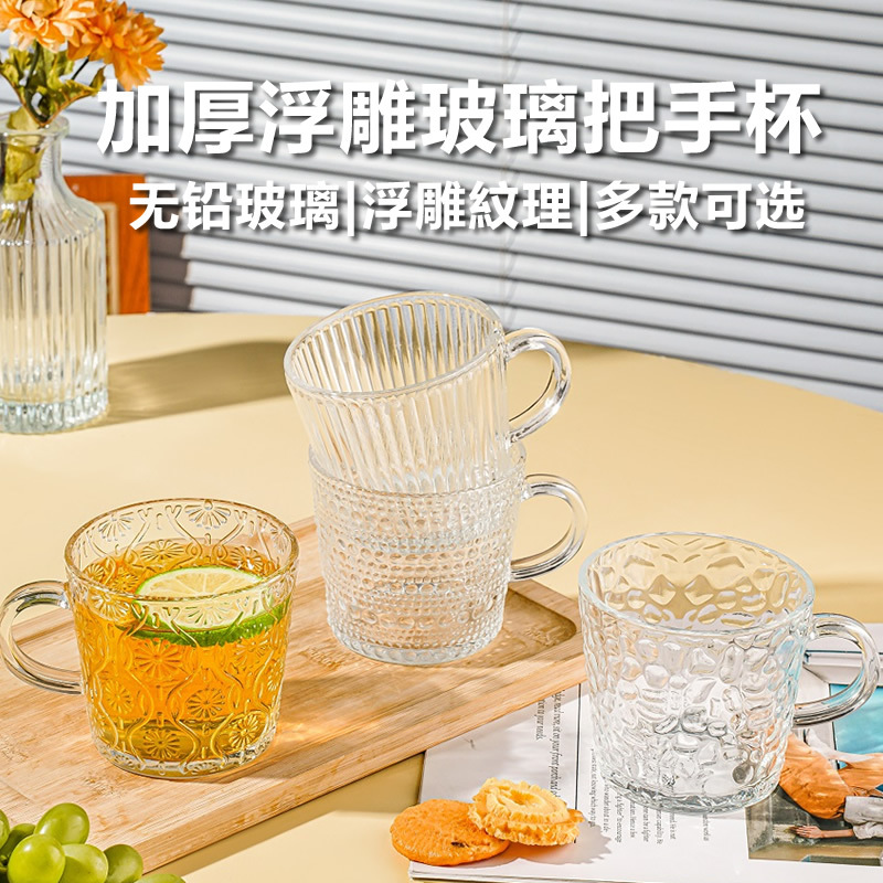 Insグラス取っ手付き家庭用朝食カップネット赤レリーフカップ高颜値コーヒーカップお土産カップ