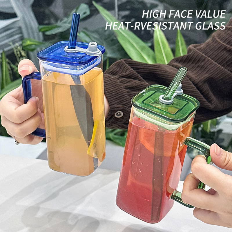スクエアグラスins風帯取っ手コップ高颜値コップ家庭用ティーカップ牛乳朝食カップお土産