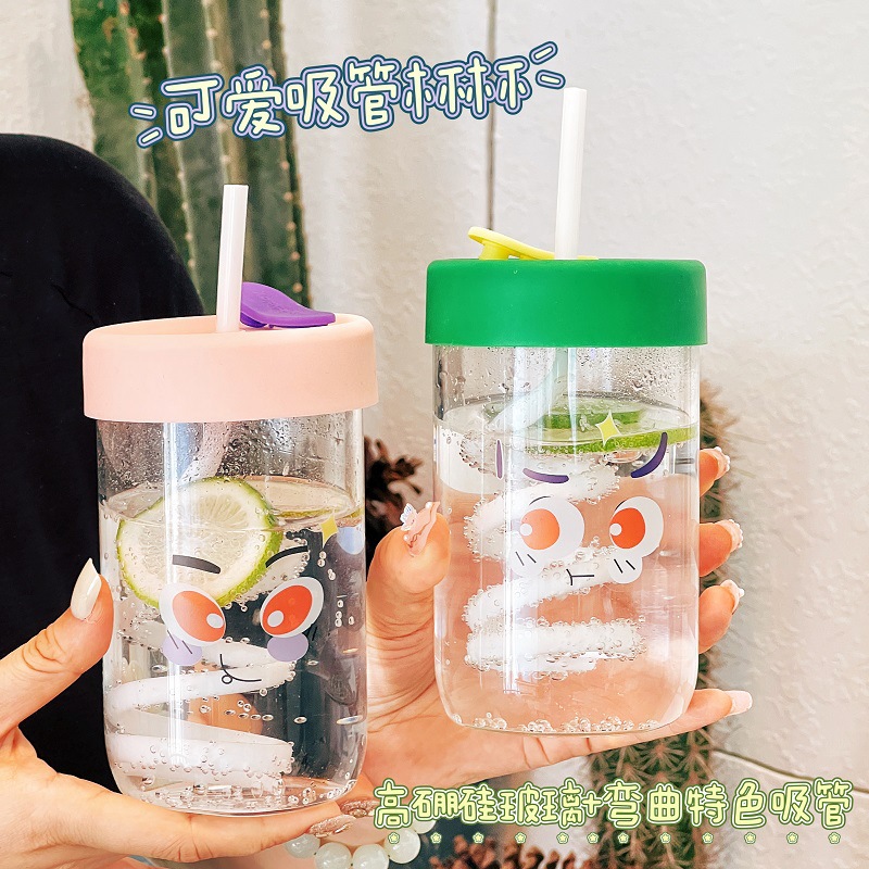 高ホウ素シリコングラス創意ストローカップ高颜値女子オフィスカップ茶水分離カップ牛乳カップ