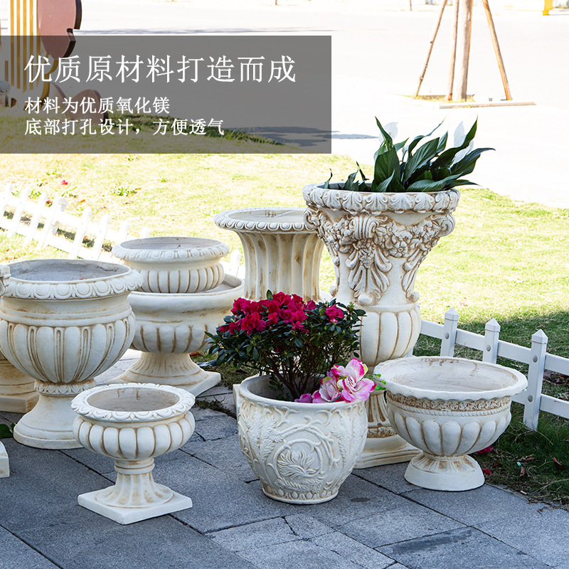 ヨーロッパのレトロな風景大型植木鉢アンティーク古いローマ柱ヴィラ中庭ドア床装飾屋外家具