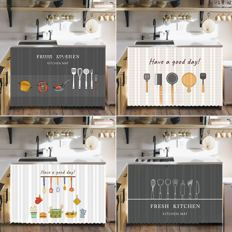 キッチンキャビネットカーテン、マジックテープ、雑貨棚カーテン、パンチングなしのプルカーテン、キャビネット防塵・防油カーテン