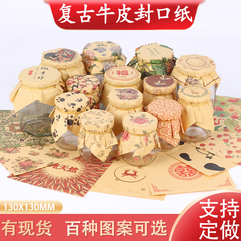 蓋クラフト紙食品プリンボトル蜂蜜ヨーグルトジャムチリボトル包装手作りギフト包装シール紙
