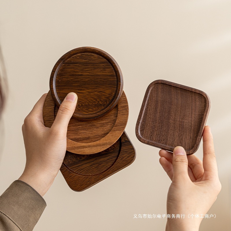 ブラックウォールナット無垢材コーヒーティースナックホームケータリングオフィスウォーターカップ火傷防止ティーコースターティートレイなし