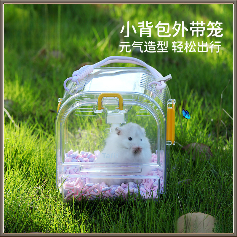 外出ハムスターのリュックサックの外にケージを持っています。携帯で通気性があります。