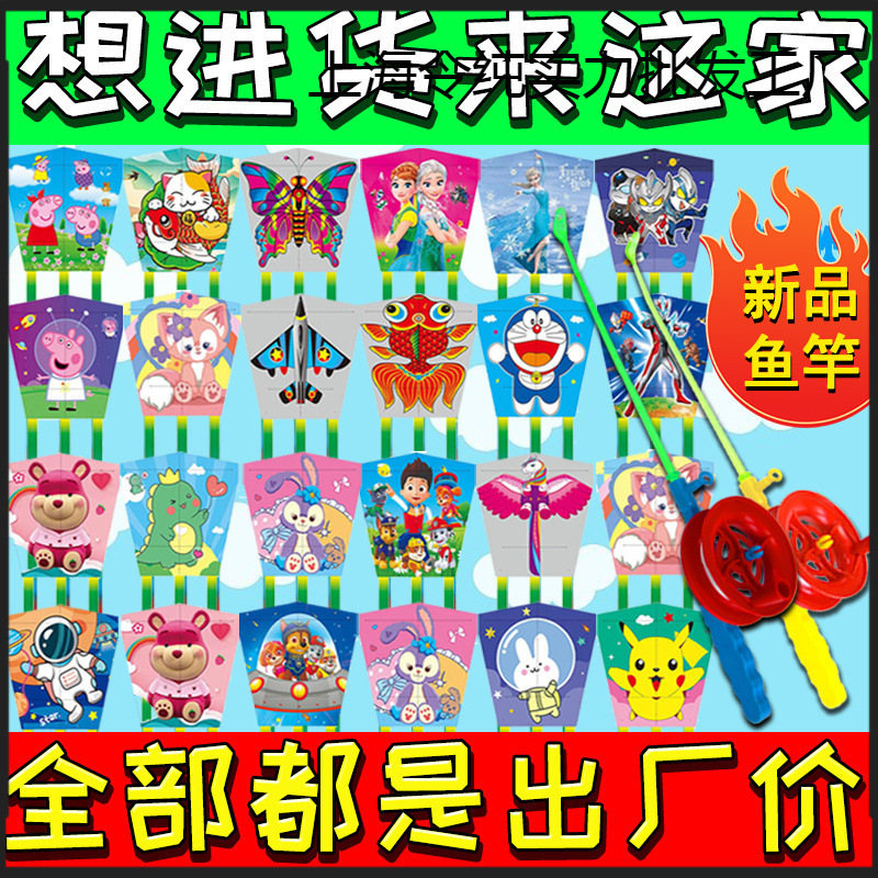 新款手持鱼竿摆地摊儿童小孩风筝塑料网红公园工厂直销进货专业级