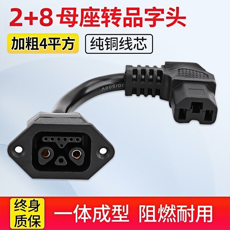電動ボトル車充電器品字延長電源コードインバータ出力線4平方純銅T型穴放電