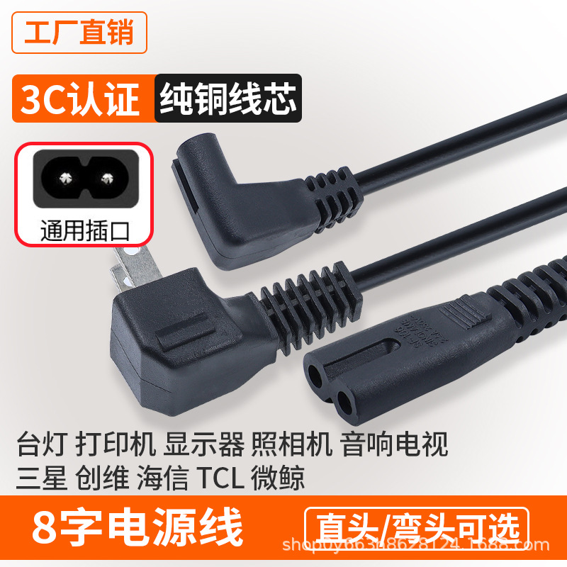 純銅8文字尾電源コード楽視TCL音響テレビディスプレイlde小電気スタンド充電器線2穴