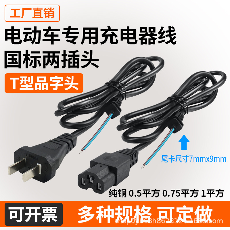 2芯カードスロット電気自動車充電器電源コード国標2プラグ入力線品字頭T穴出力線延長