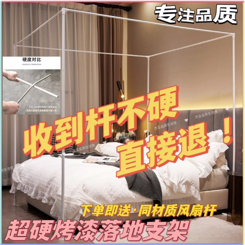 新しいペイント家庭用床置き蚊帳ブラケット、厚みのあるベッドカーテン、鉄製の超硬スクエアトップの完全なセット