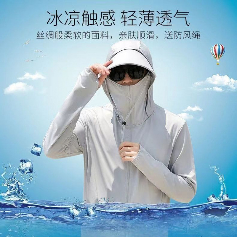 アイスシルクメッシュ日焼け防止服メンズサマージャケット抗 UV 薄型通気性屋外釣り服