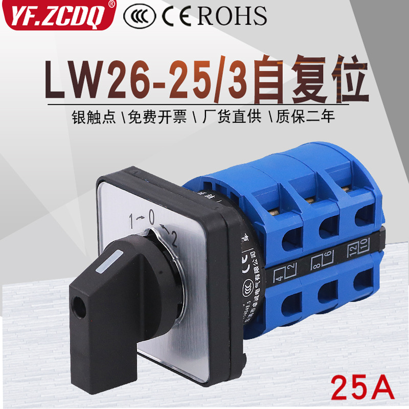 万能変換スイッチLW26-25/2自己リセット点動切替高圧盤分割投入逆順正逆転25a