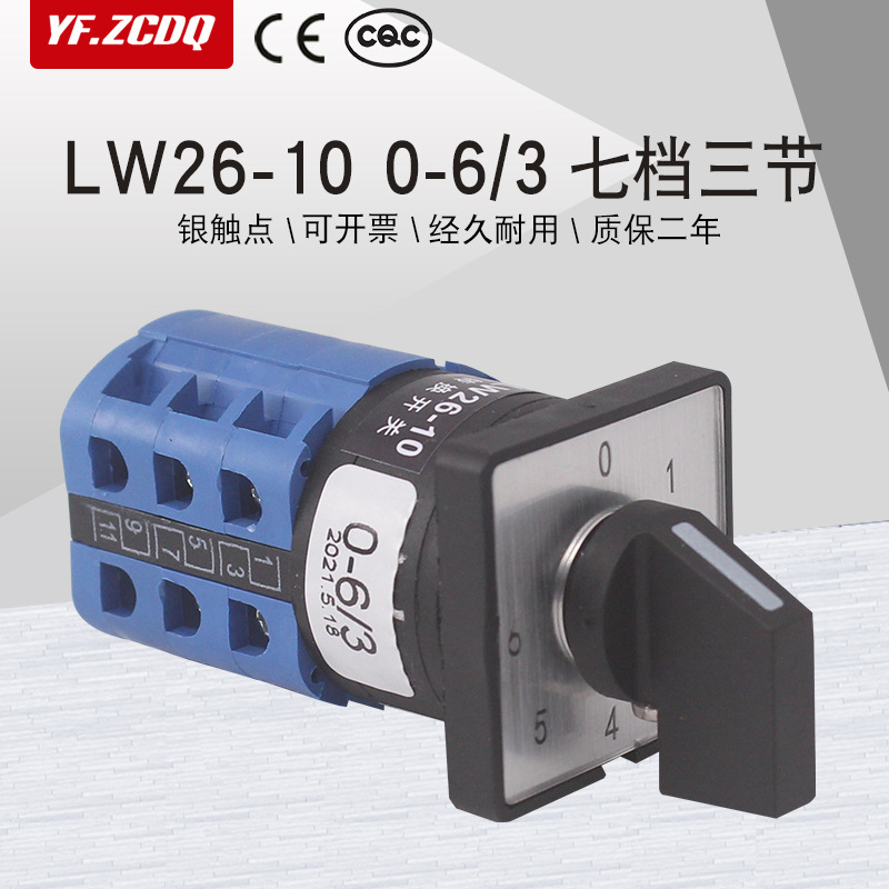 LW26-10 0-6/3七段三節単線六路電源信号電圧切替6選一万能切替スイッチ