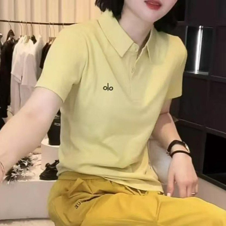 2024夏の新型ファッション純色四粒ボタン小vネック洋風百合減齢気質女装tシャツ半袖