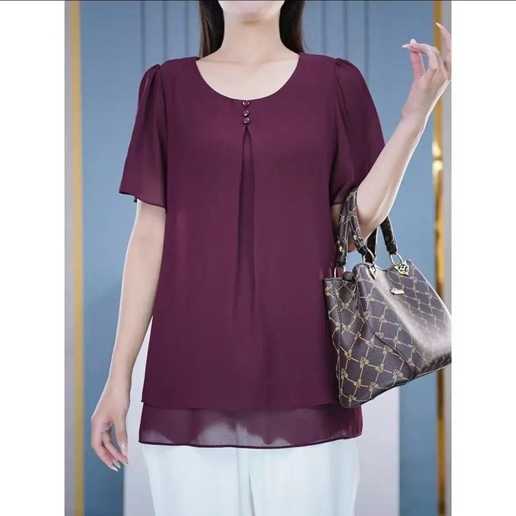 ドロップシッピングライブブロードキャストホットスタイル2025夏の新しいファッションラウンドネックルーズ気質痩身多用途年齢軽減シャツ