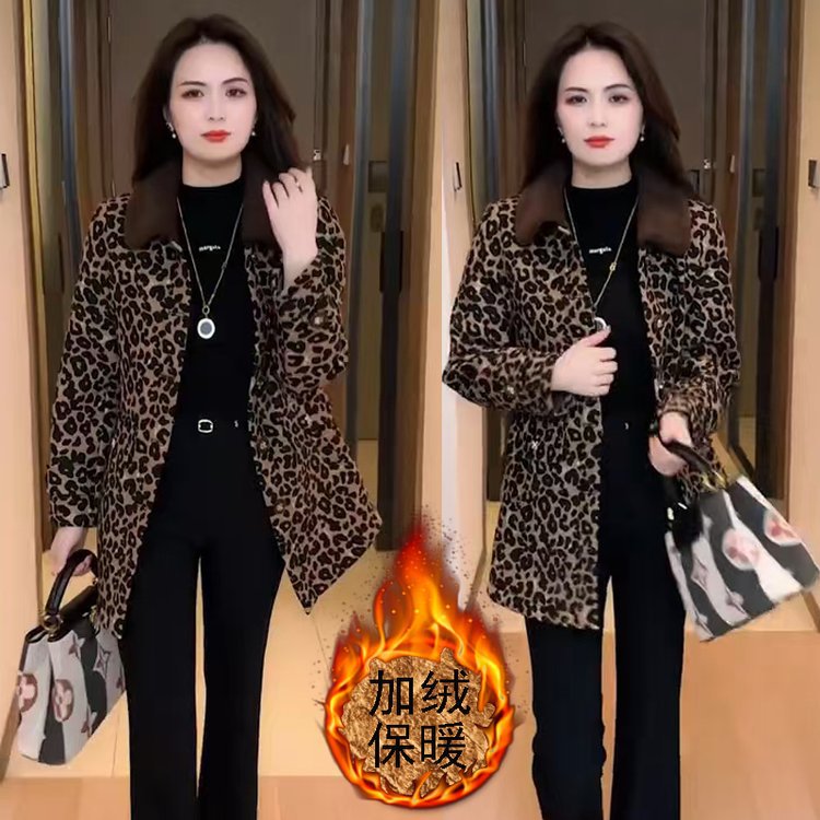 代理生中継保温2024冬の新型ファッションベルベット保温百合色豹紋コート上着