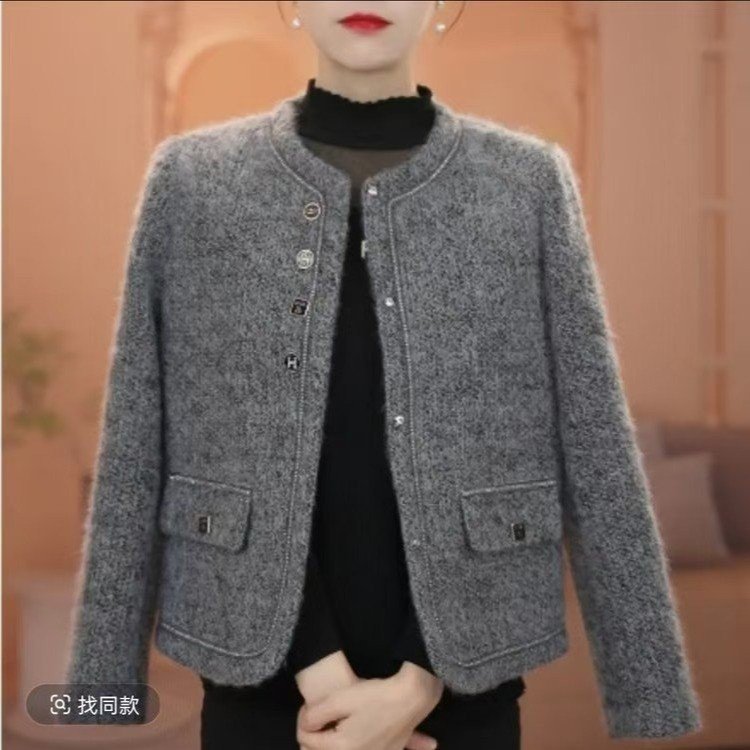 代件2025春の新型ファッション丸首百合気質女装小香風ショートコート上着