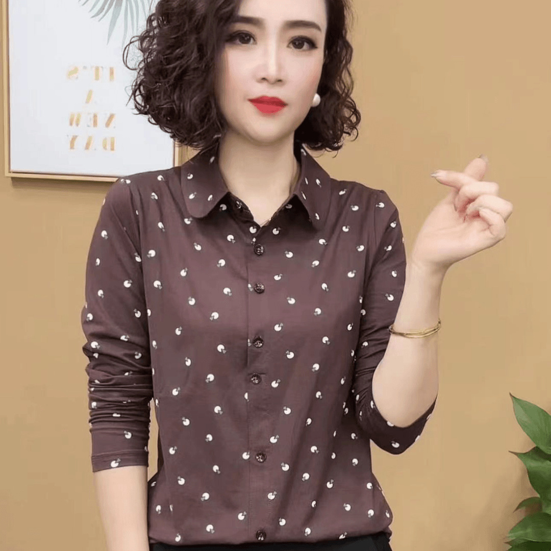 2024秋の新型ファッション洋風百合気質減齢長袖女装水波紋シャツの中に上着を着る