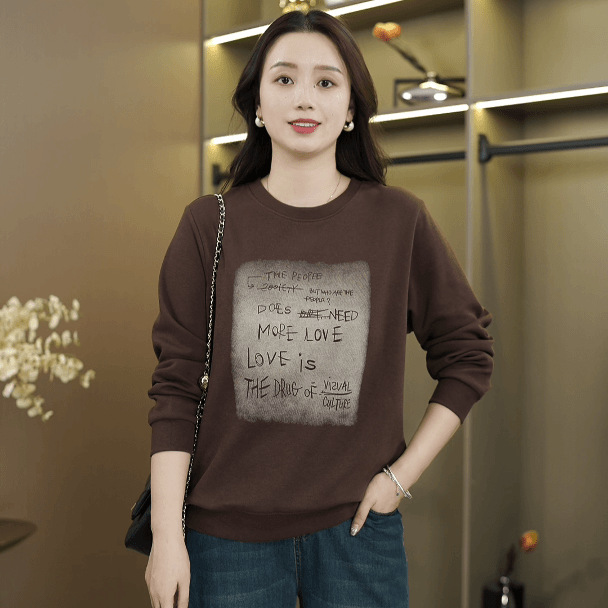2024秋の新型ファッションプリント丸首純色百合気質減齢洋気女装精品上着