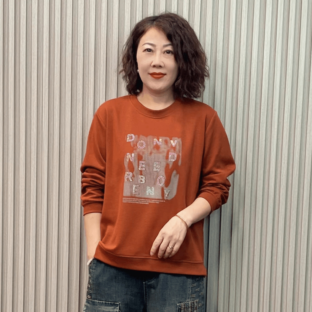2024秋の新型丸襟プリント肌の網糸長袖カジュアル百合弾力性があります。