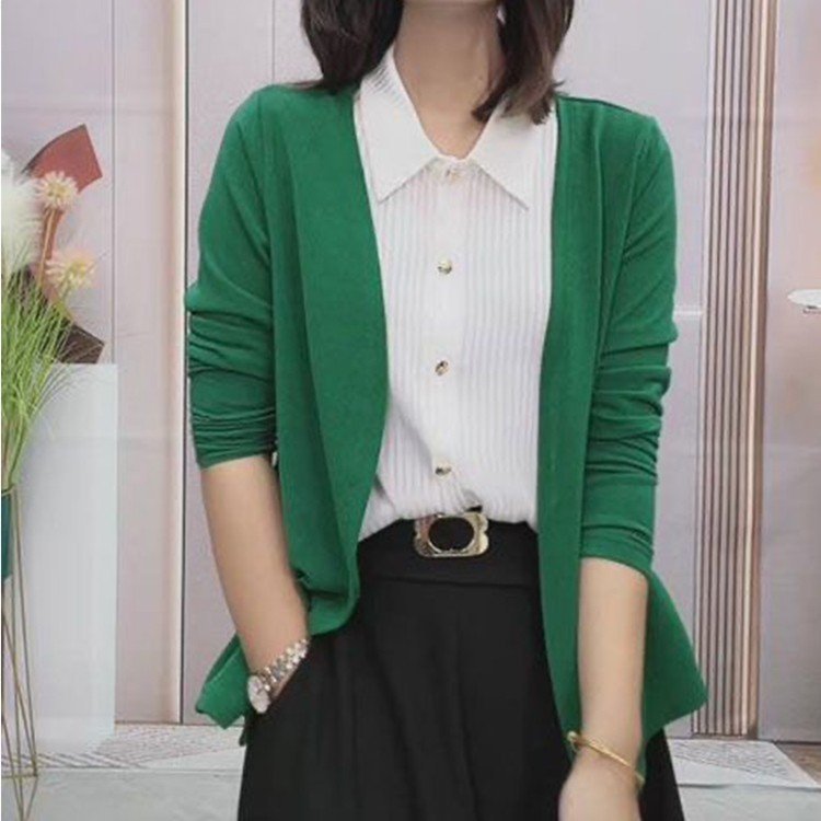 中長のシャツのコートの女性の2024早秋の新型の韓国版の気質はやせている純色の中年のお母さんの服装の百合のカーディガンを現します。
