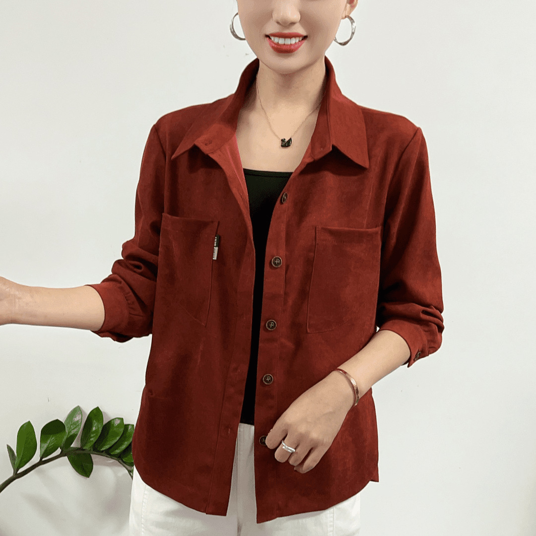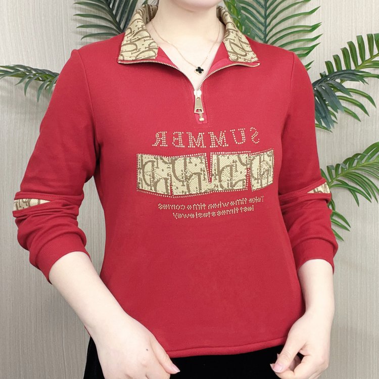 2024秋の新型ファッションは、2つの襟をめくって、贅沢な年齢を減らして、中年の母親がシャツを着ている。