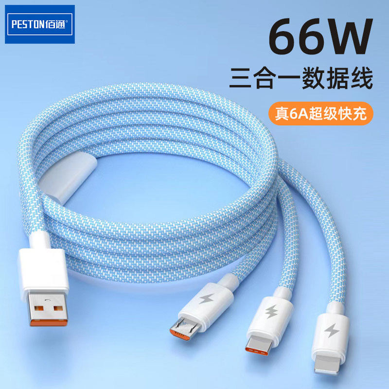 佰通x 17一引き三6a速充安卓type-cケーブル3合1適用iphone充電ケーブル1.2メートル