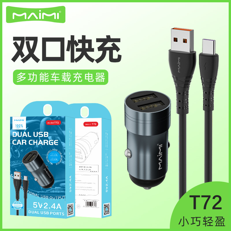 麦無t 72ダブルusbインターフェイス車載充電器セット超速充携帯電話シガレット変換車充電ケーブル