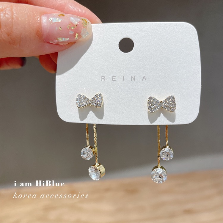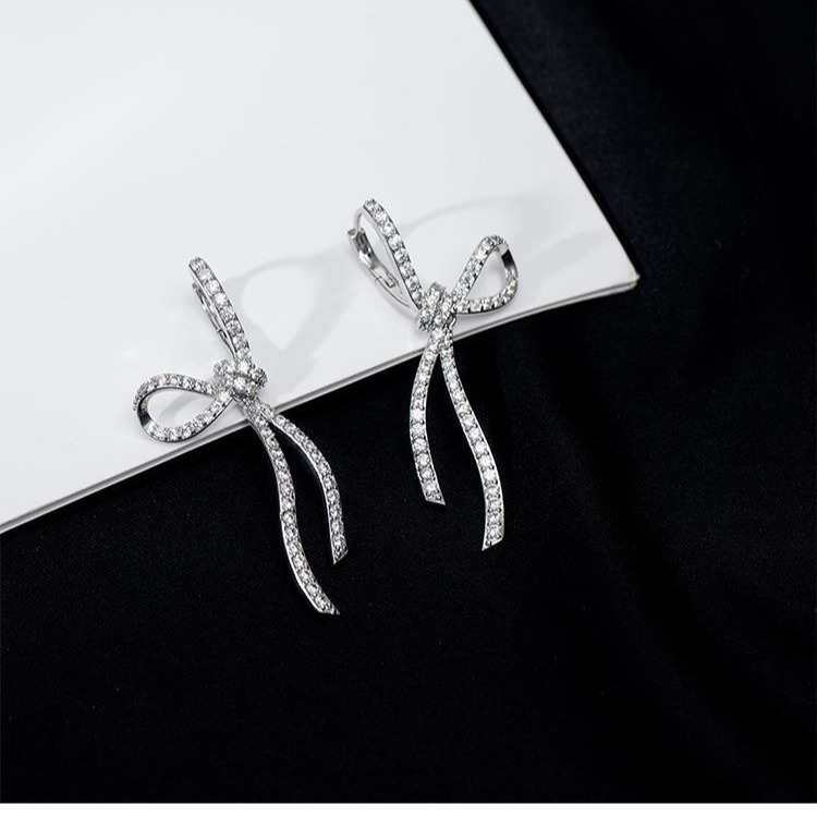 韓国の東大門の震える音の同モデルの小さいジルコンの蝶結びのフラッシュドリルのフリンジイヤリングs 925銀の針の前後はつけます。