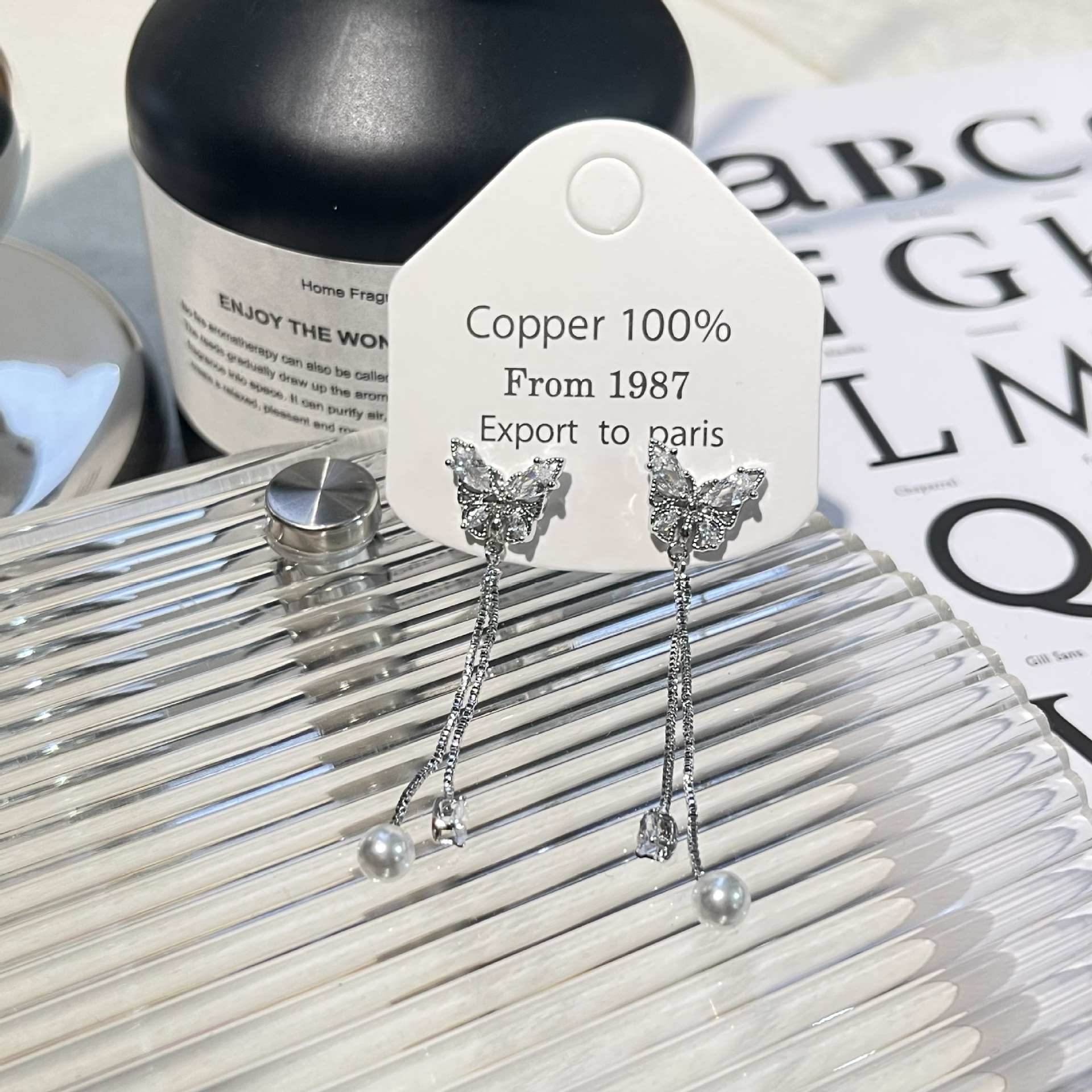 絶妙な蝶の輝くダイヤモンドパールタッセルイヤリングニッチデザインレディースハイエンドイヤリング2025新しいロングイヤリング