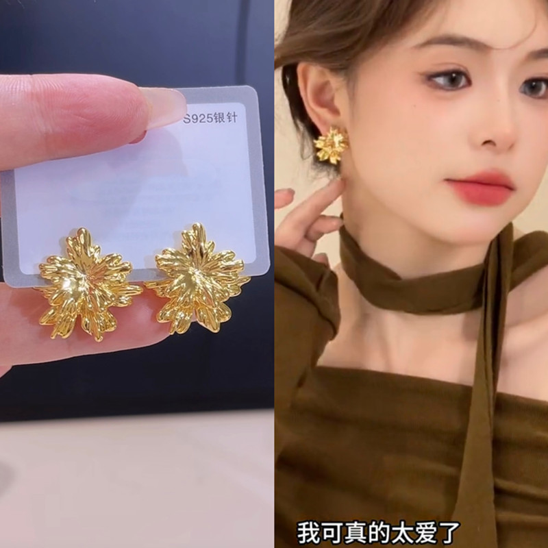 レトロな金色の花の二重前後にイヤリング付きのファッション女性の冷たい風の気質の小さい大衆のデザイン感のピアス