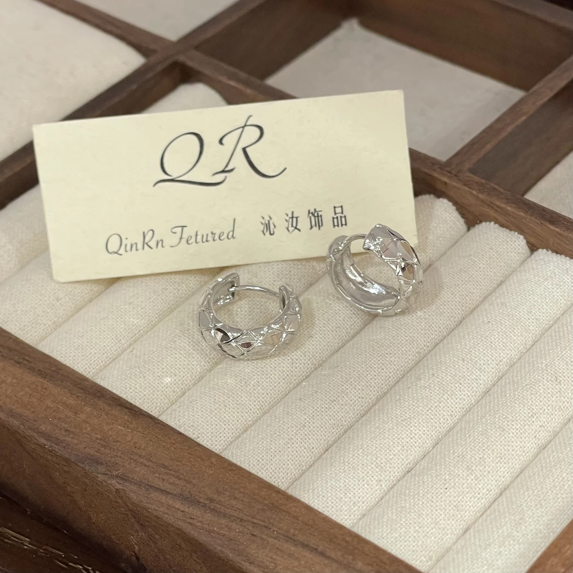 銀色の菱格の木目の小さい耳の輪の耳のボタンのファッション的な百合の耳の装飾の質感の耳のボタンのシンプルな小さい衆ins