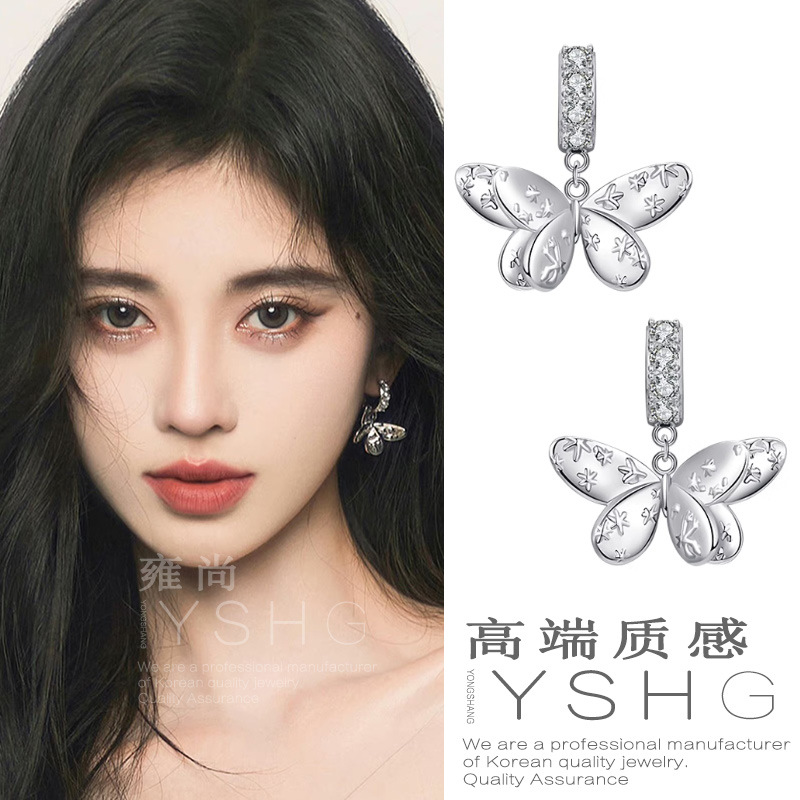 鞠婧は同じタイプのイヤリングの銀色の蝶をかき集めて、ジルコンの耳の飾りをつけます。