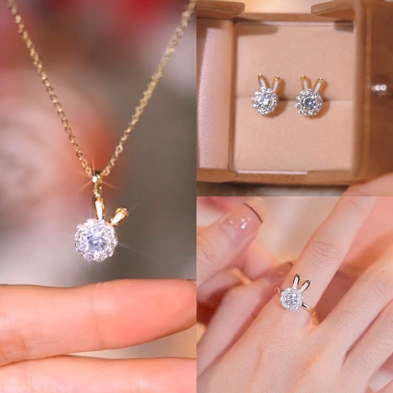 ウサギ年三点セット回転可能なネックレスの指輪のピアスが可愛いウサギのイヤリングs 925銀の針が入っています。