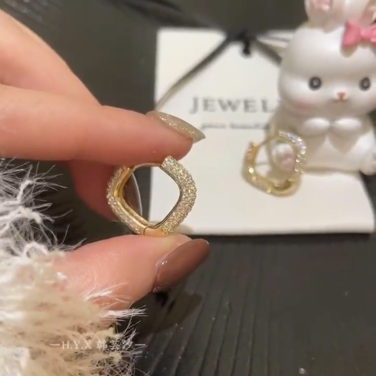 ジルコンの文字が入っているドリルイヤリングs925銀針セイコー彫刻高級感幾何学的な透かし彫りの四角いピアス