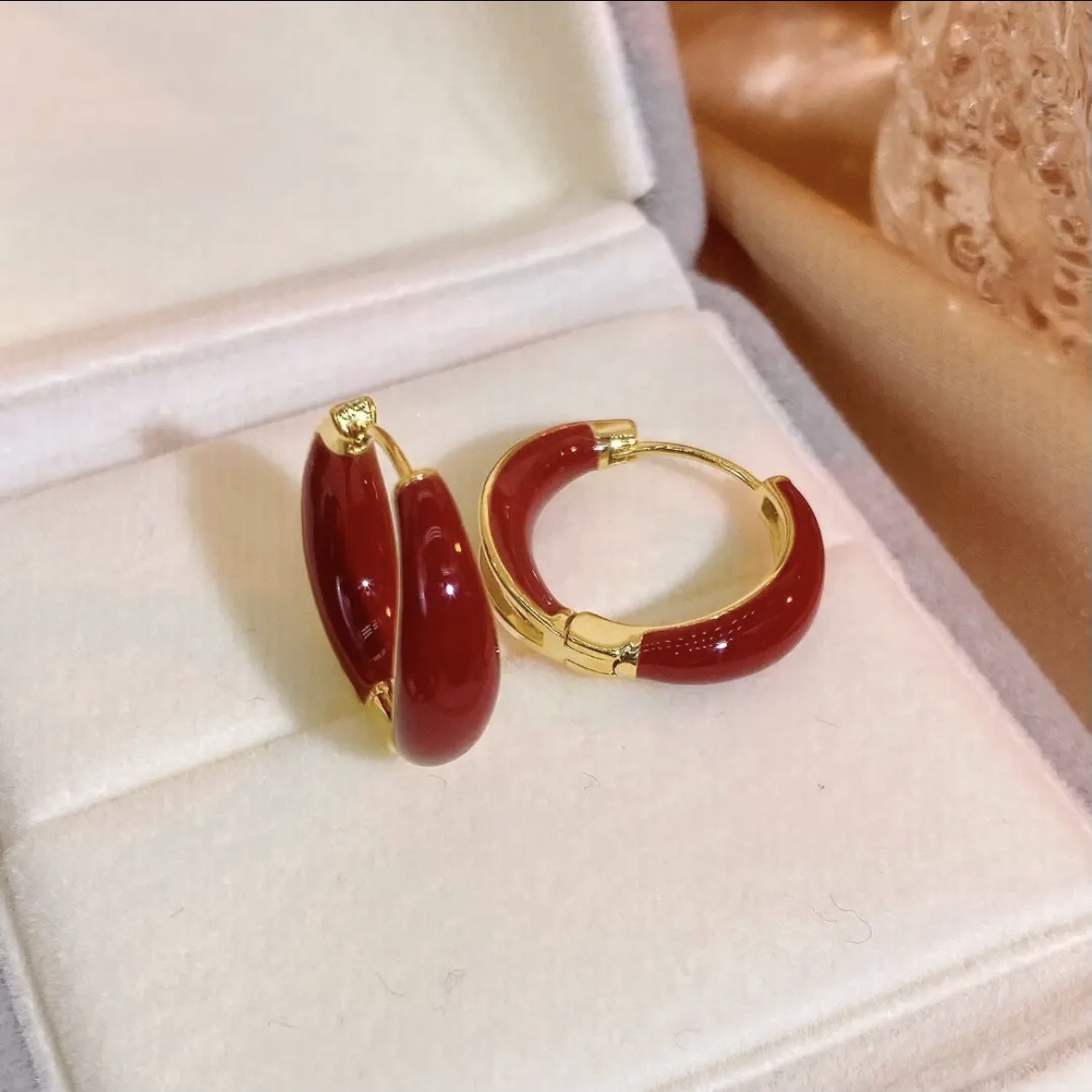 秋冬の赤いリングの耳のボタンの女性の軽い豪華な大衆のデザイン感の高級なイヤリングの気質のファッションの復古のシンプルな耳の輪