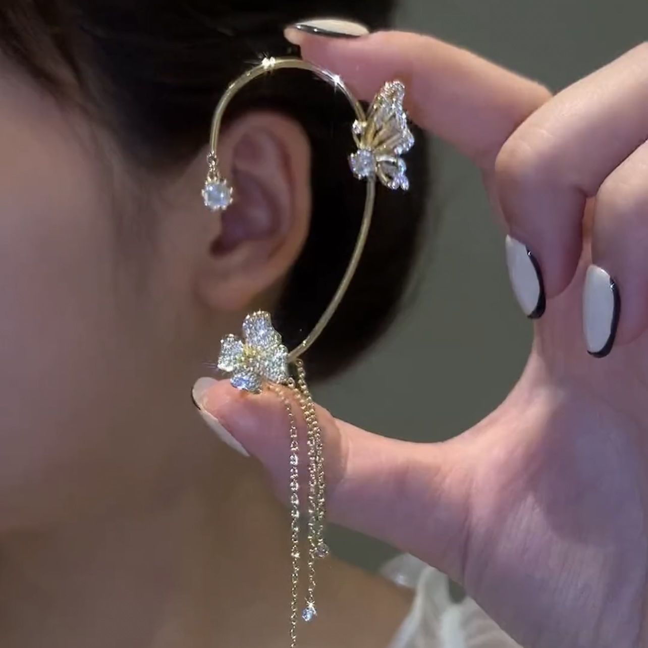 震え音の同じタイプの蝶のフリンジの耳掛けの小さいジルコンの花の蝶の軽やかな長いタイプのフリンジチェーンの耳掛けの女性