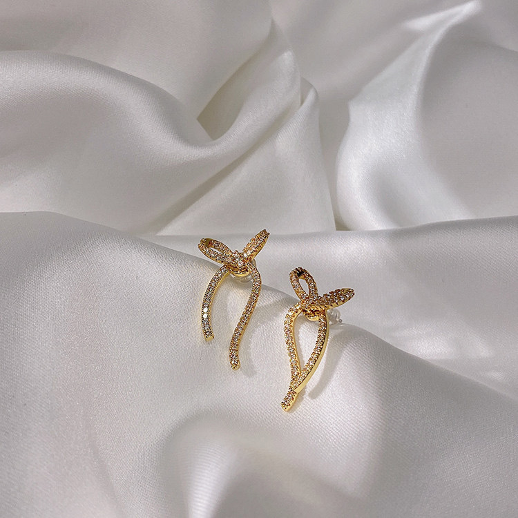 韓国の東大門の震える音の同モデルの小さいジルコンの蝶結びはアイデアの前後でs 925銀の針の蝶結びをつけます。