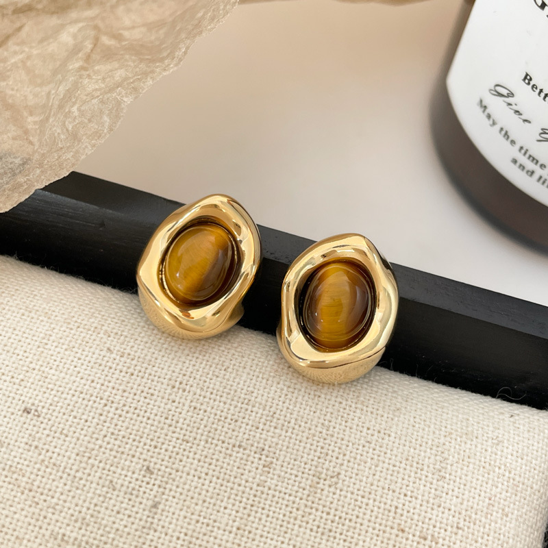 虎眼石復古イヤリング大衆デザイン感高級感美ラード秋冬ピアス周囲顔イヤリング女