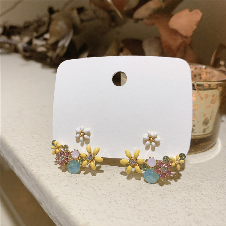 韓国の東大門の同じタイプの小さい清新な油の色の花の前後はs925銀の針をつけて甘いイヤリングを分解することができます。