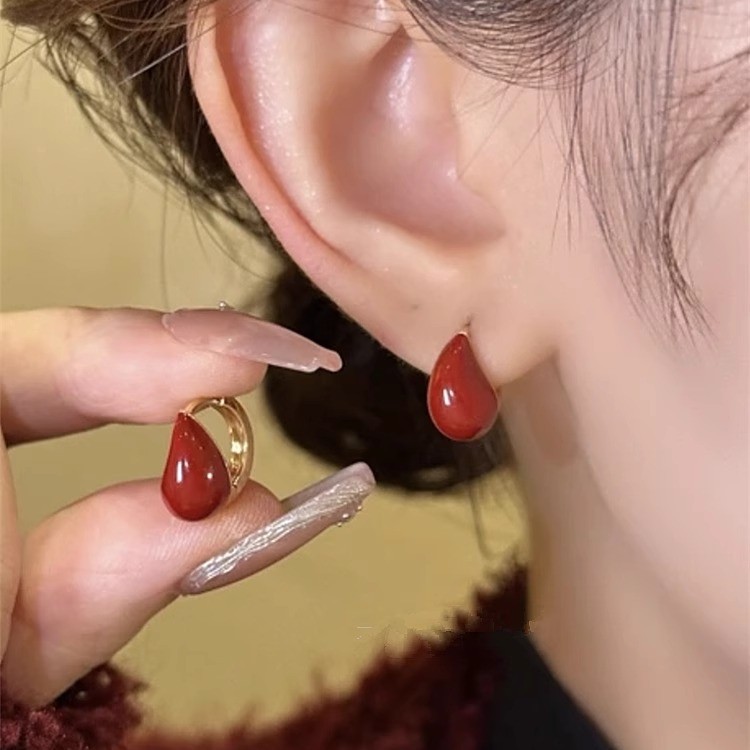 新商品のエナメルの赤い立体水滴の耳掛けのイヤリングはシンプルで、白い耳掛けの日常の通勤耳飾りがあります。