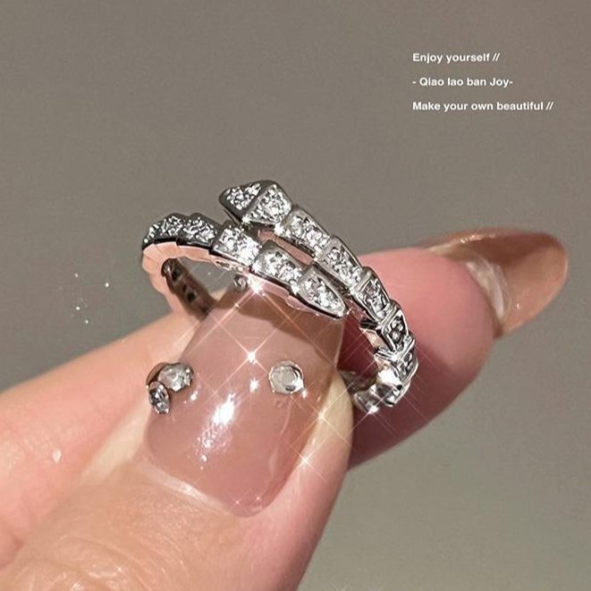 ジルコンのキラキラとダイヤモンドの霊蛇の形の指輪の銀色の開口指輪の指輪の高級な質感は簡単で、ファッションのクールです。